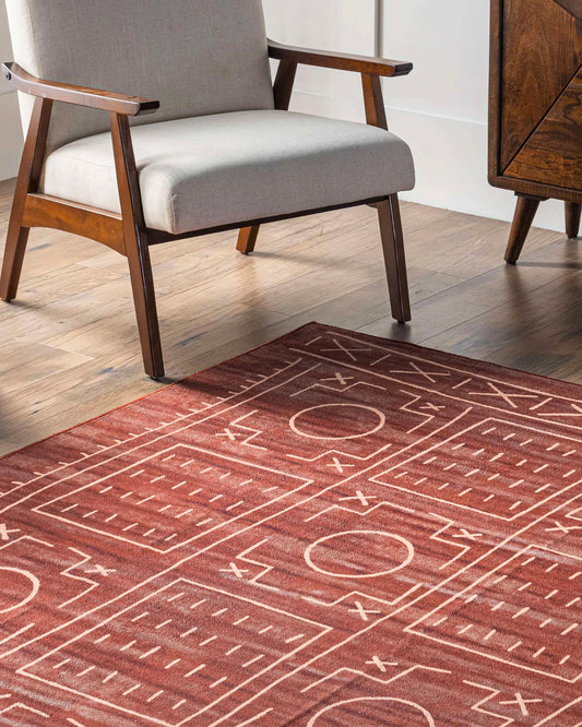 Rust Washable Geometric Rug