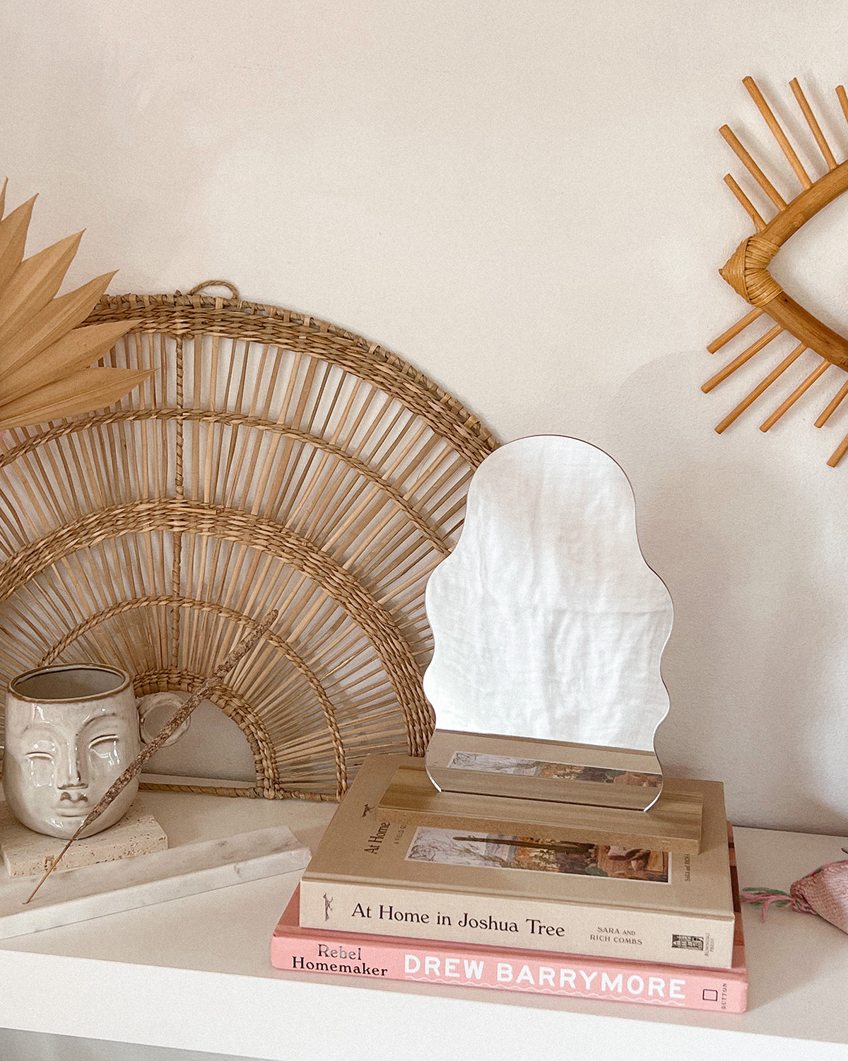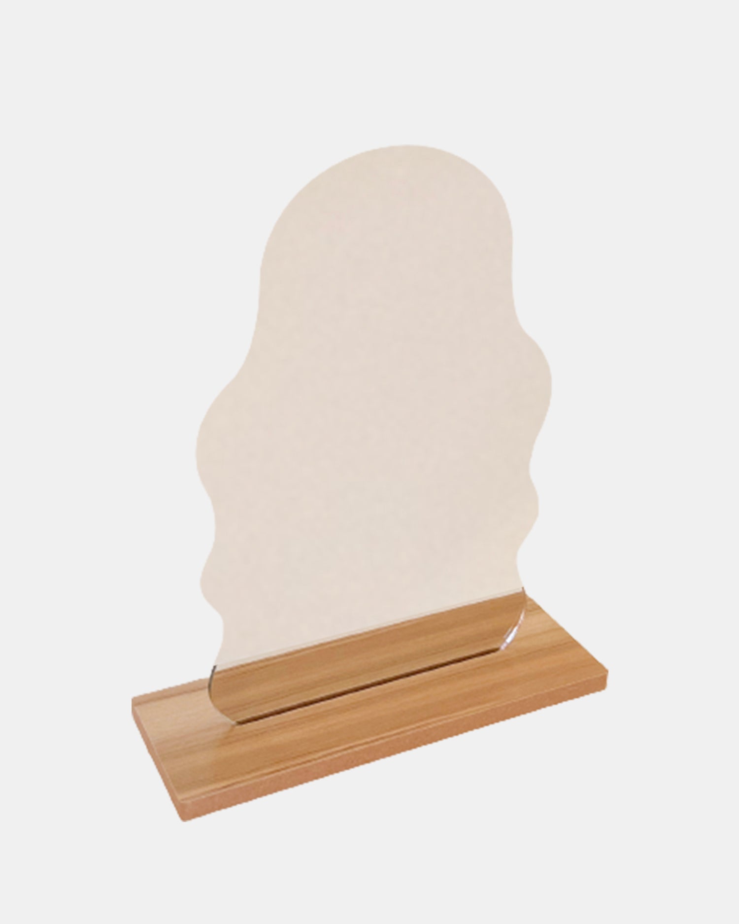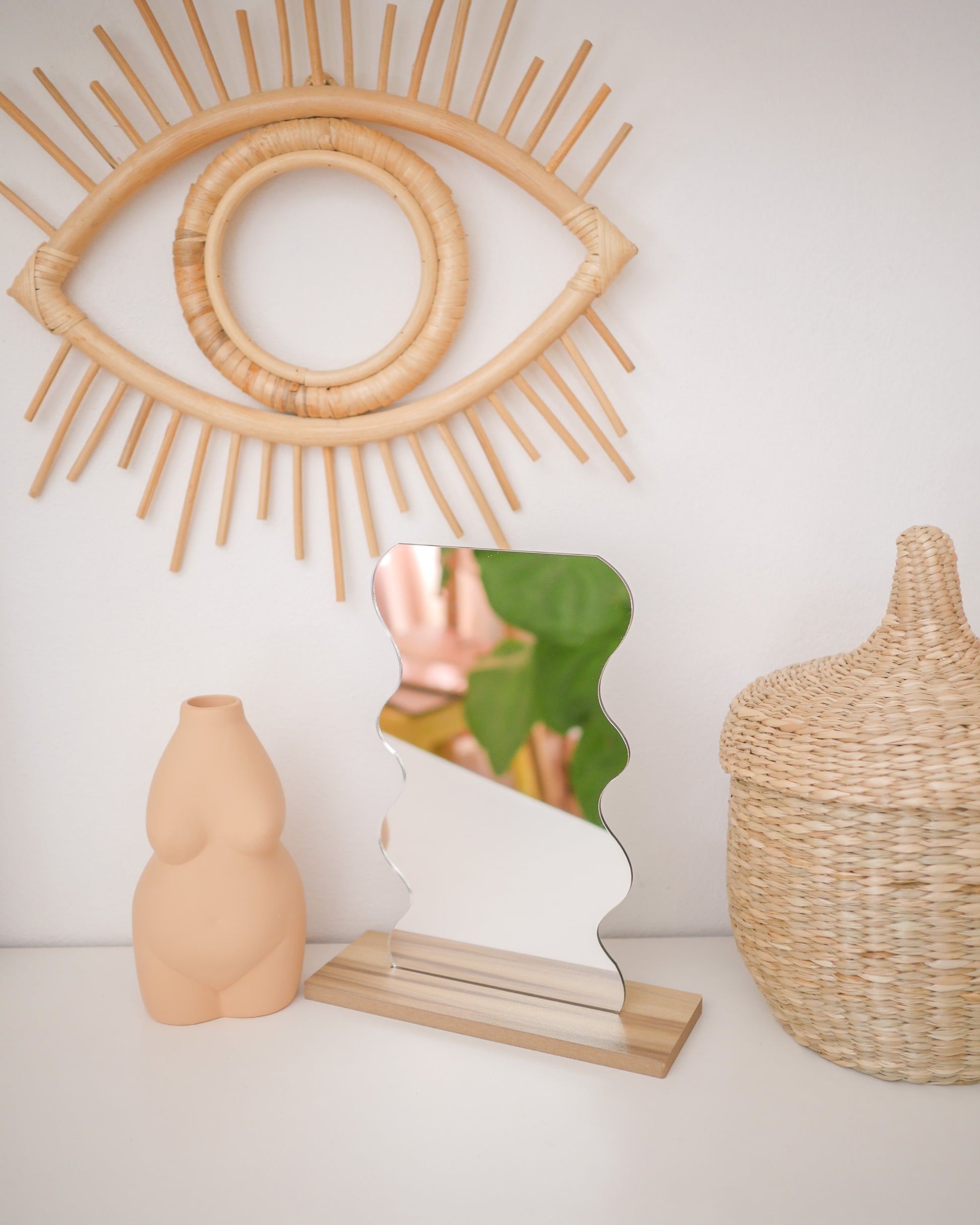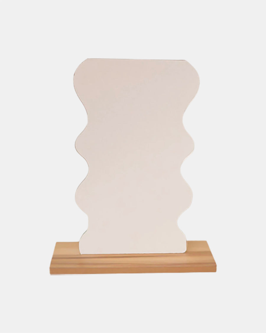 All about abstract. Perfect for getting ready, this abstract mirror adds a funky shape to your tabletop.