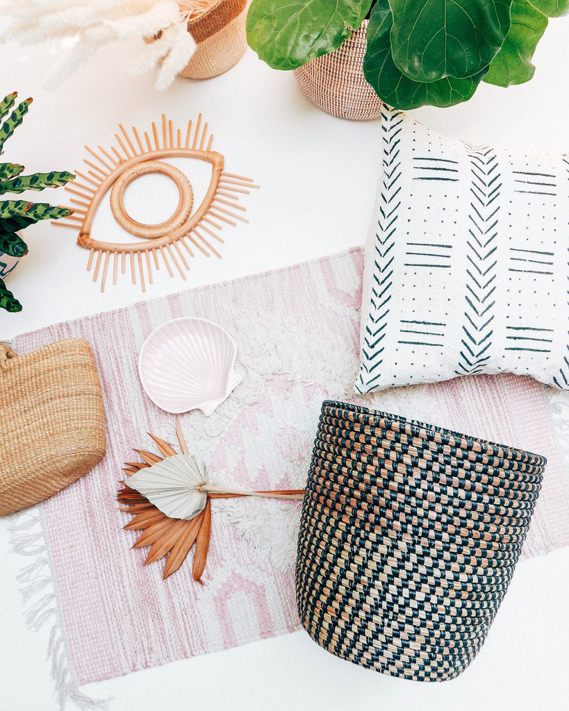 Handmade simplicity. Crafted of typha stalks and woven by artisans, our tall white basket adds pretty texture to your living room, bedroom or bathroom. Perfect for storing extra blankets, bath linens or your favorite plant.