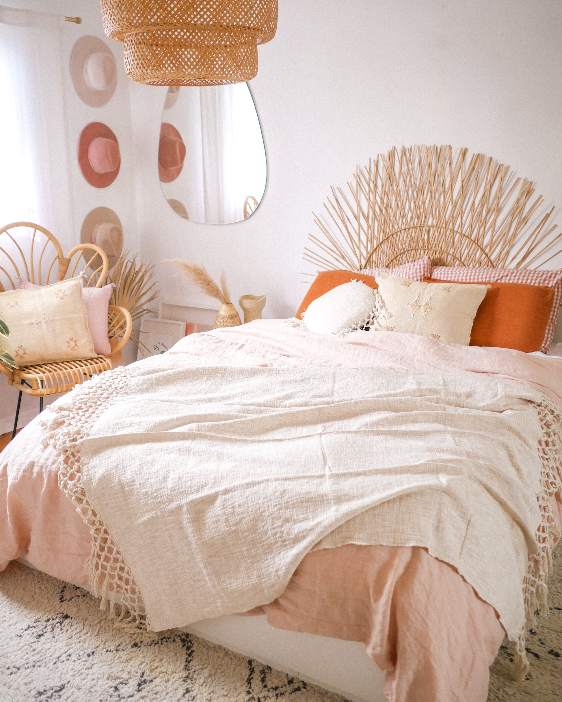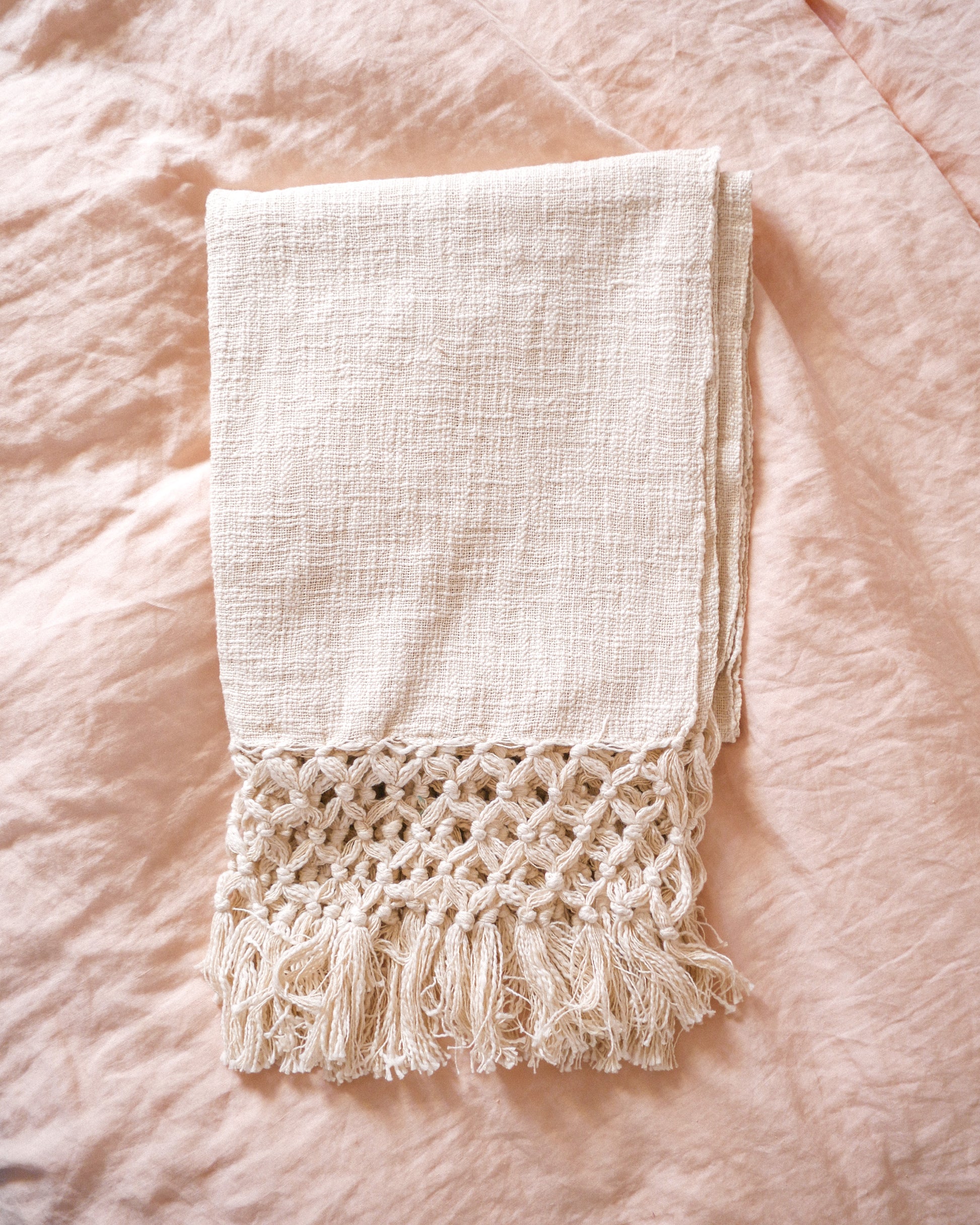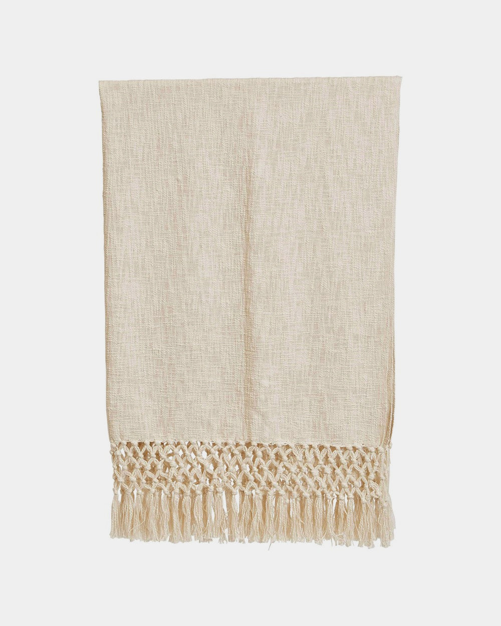 Natural elements. Soft and cozy, the fringe throw blanket is made of a cozy, textured cotton. In textured neutral cream it is ideal for displaying as a throw at the end of a bed, over a chair, or as cozy companion anywhere you are.