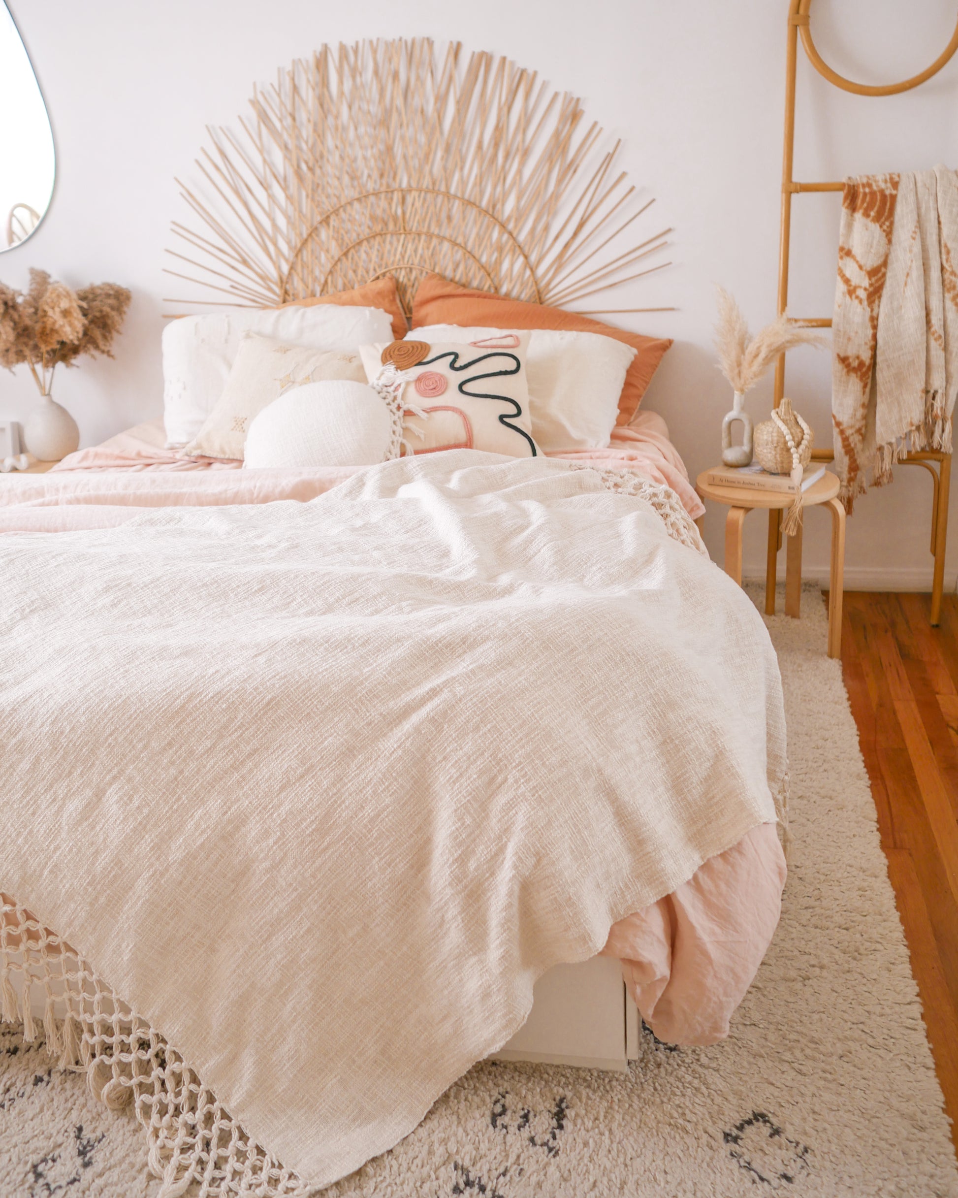 Cream Fringe Throw Blanket