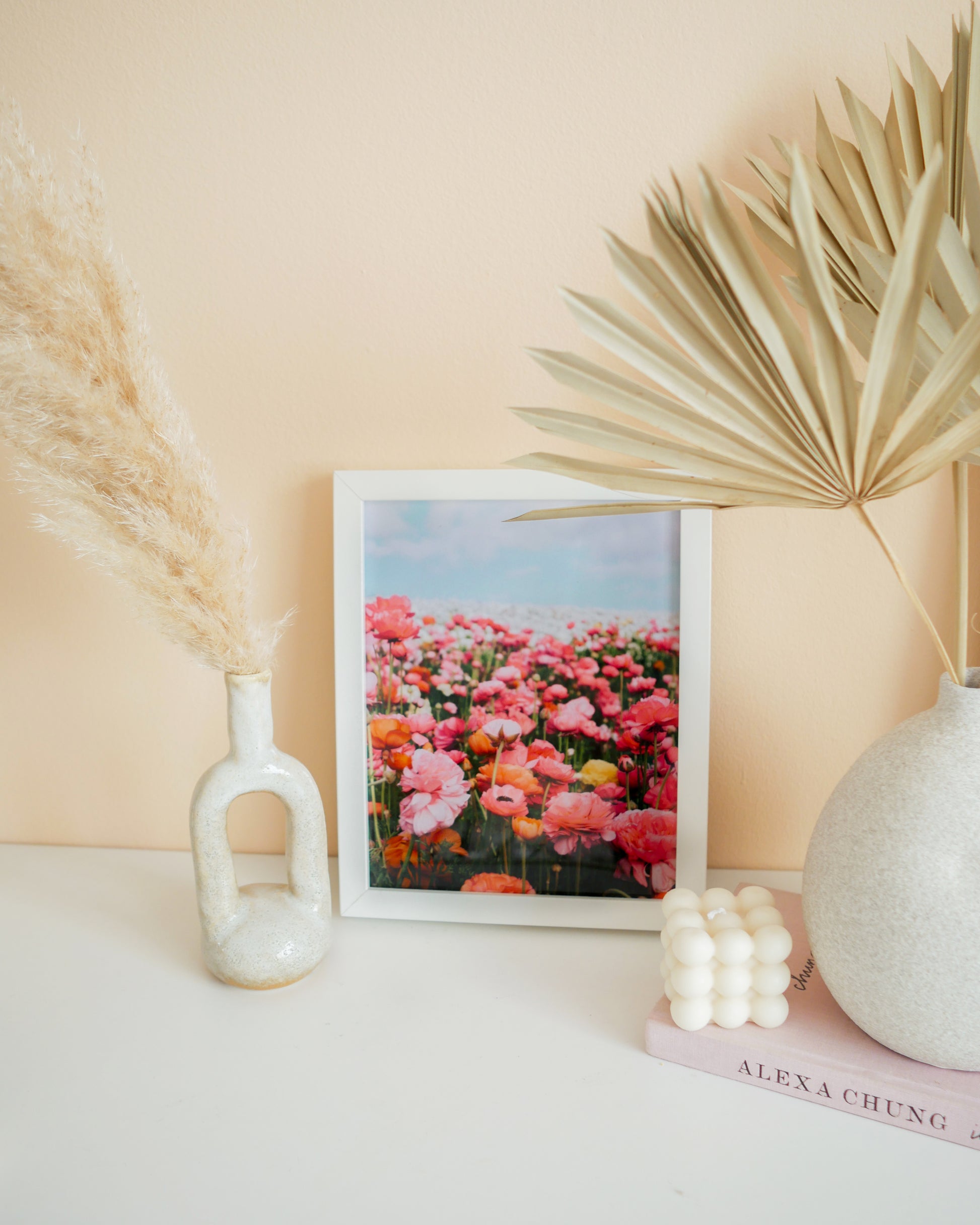 A colorful field of flowers by Erika Carlock. A beautiful, minimal art print to brighten your walls.