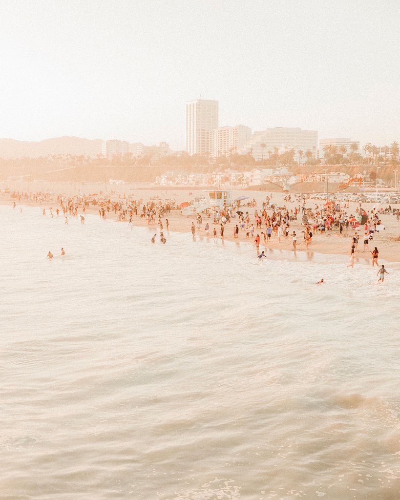 The golden shores of Santa Monica beach in California by Erika Carlock. A beautiful, minimal art print to brighten your walls.