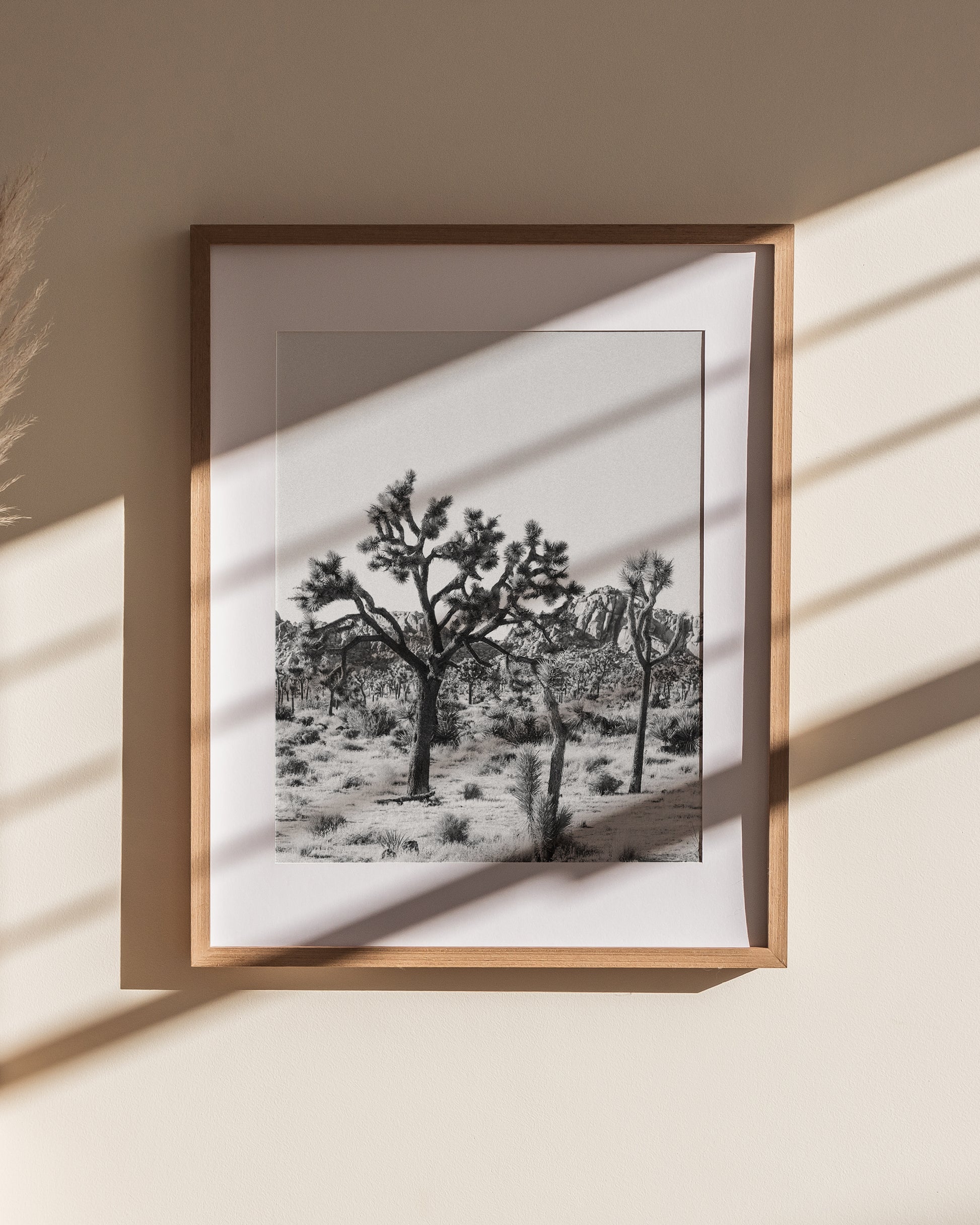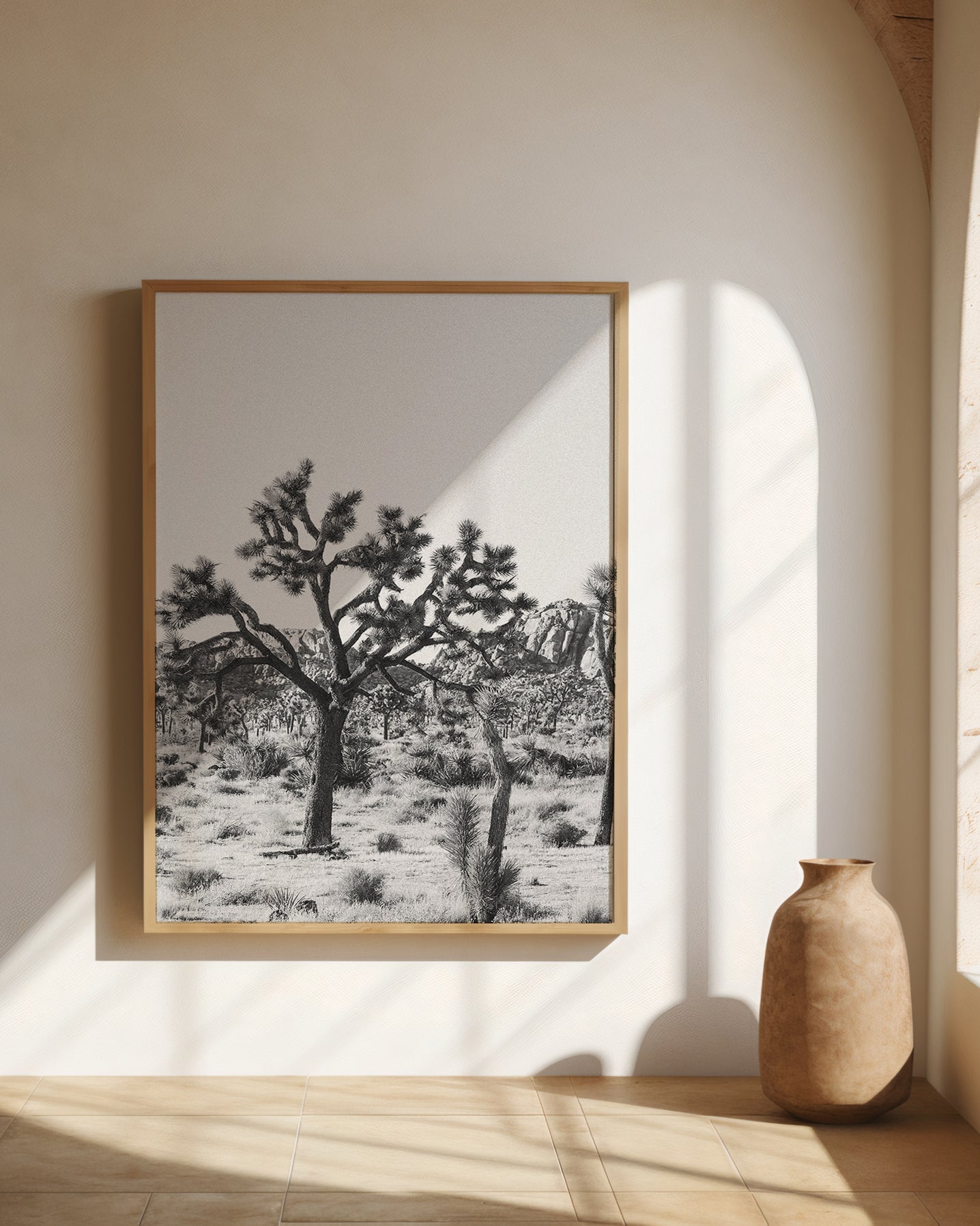 A neutral desert scene in Joshua Tree by Erika Carlock. A beautiful, minimal art print to brighten your walls.