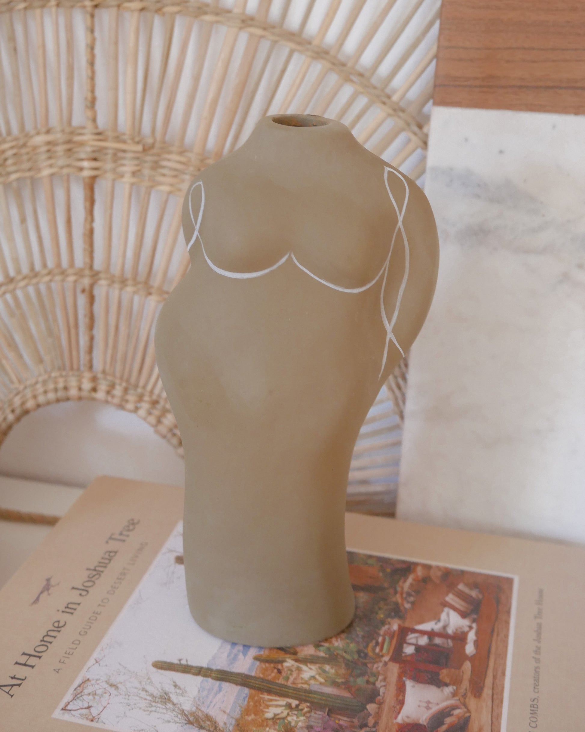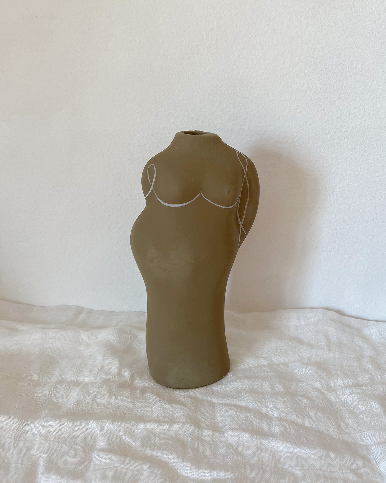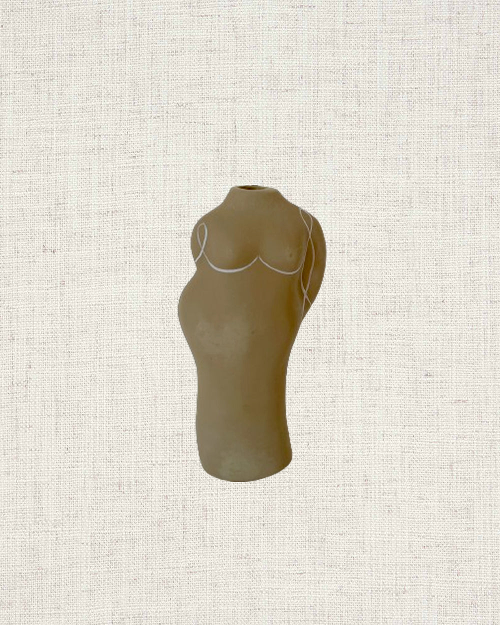 Female form. Display your favorite stems, pencils and more in this vase that pays homage to the curves of the female form. Glazed terracotta with sculpted shape and painted details.