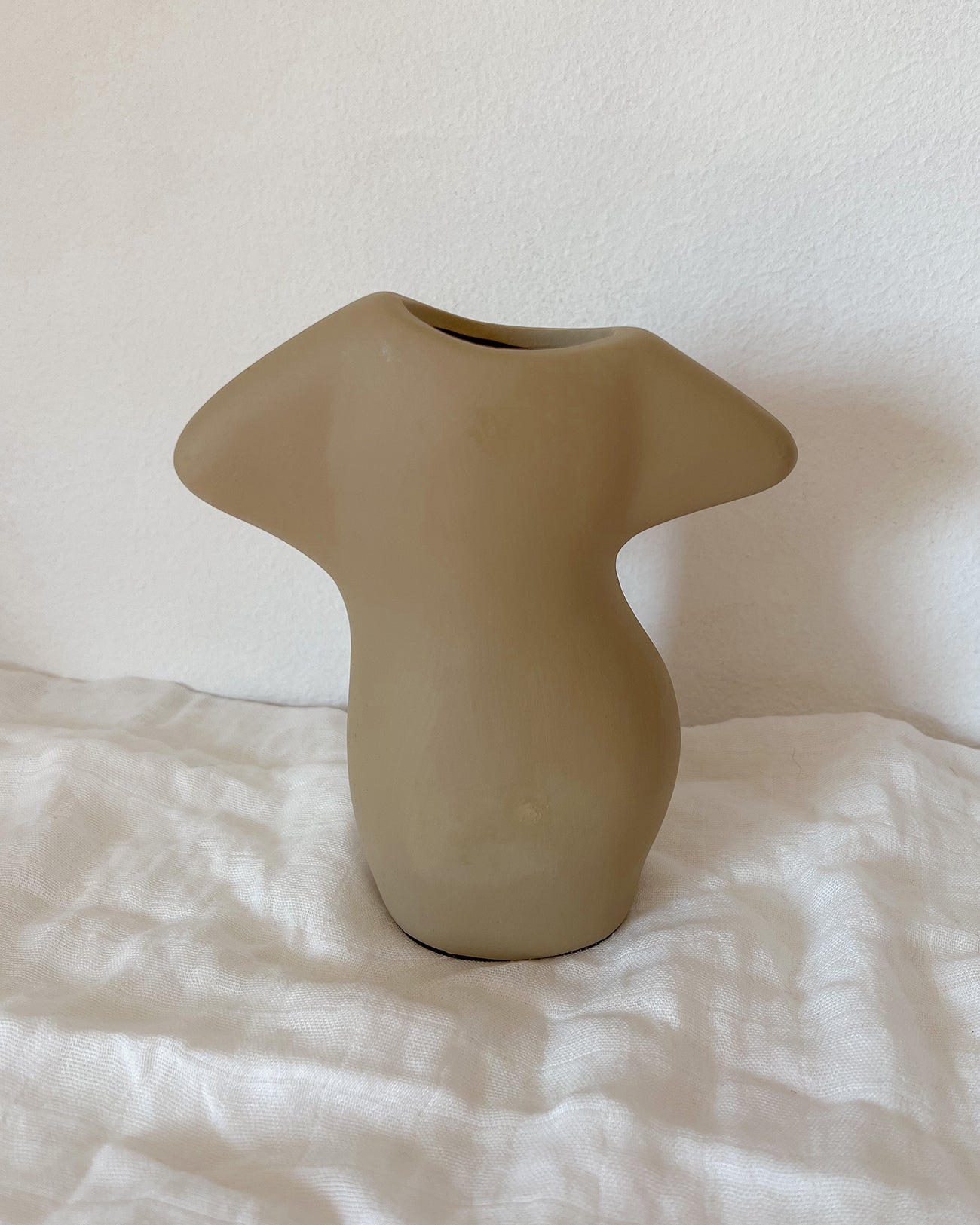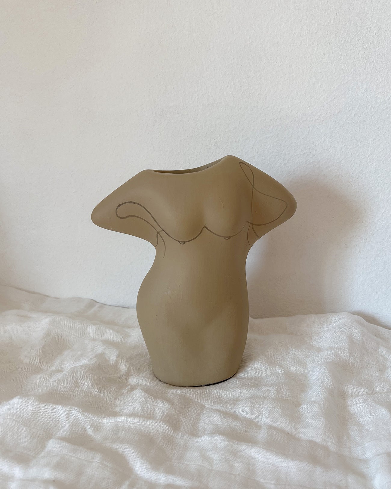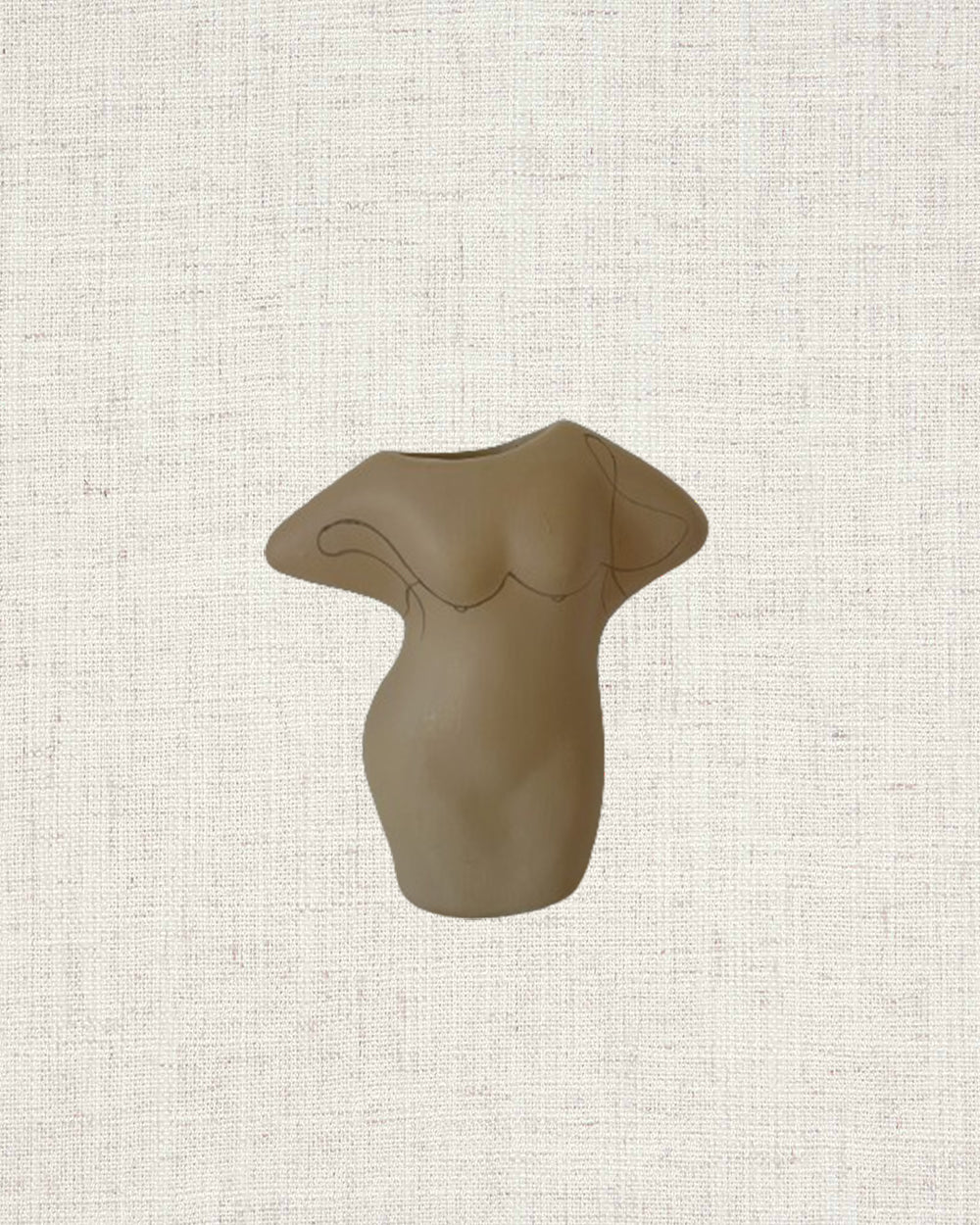 Female form. Display your favorite stems, pencils and more in this vase that pays homage to the curves of the female form. Glazed terracotta with sculpted shape and painted details.