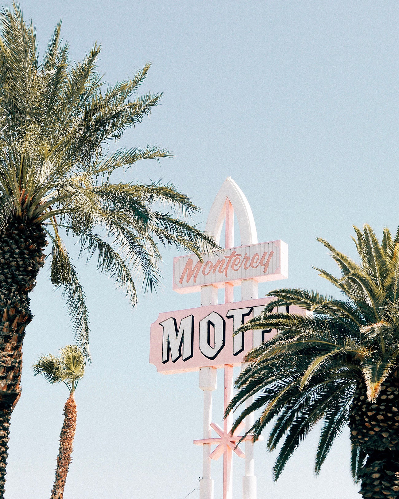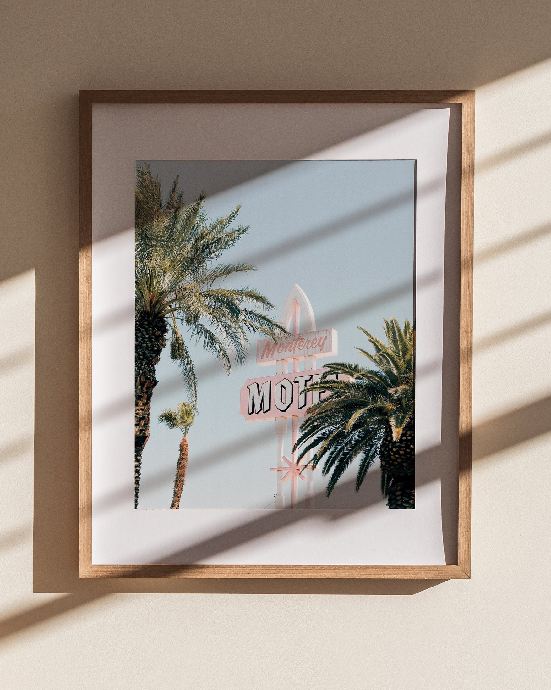 A vintage-style retro neon sign of the Monterey Motel in Las Vegas by Erika Carlock. A beautiful, minimal art print to brighten your walls.