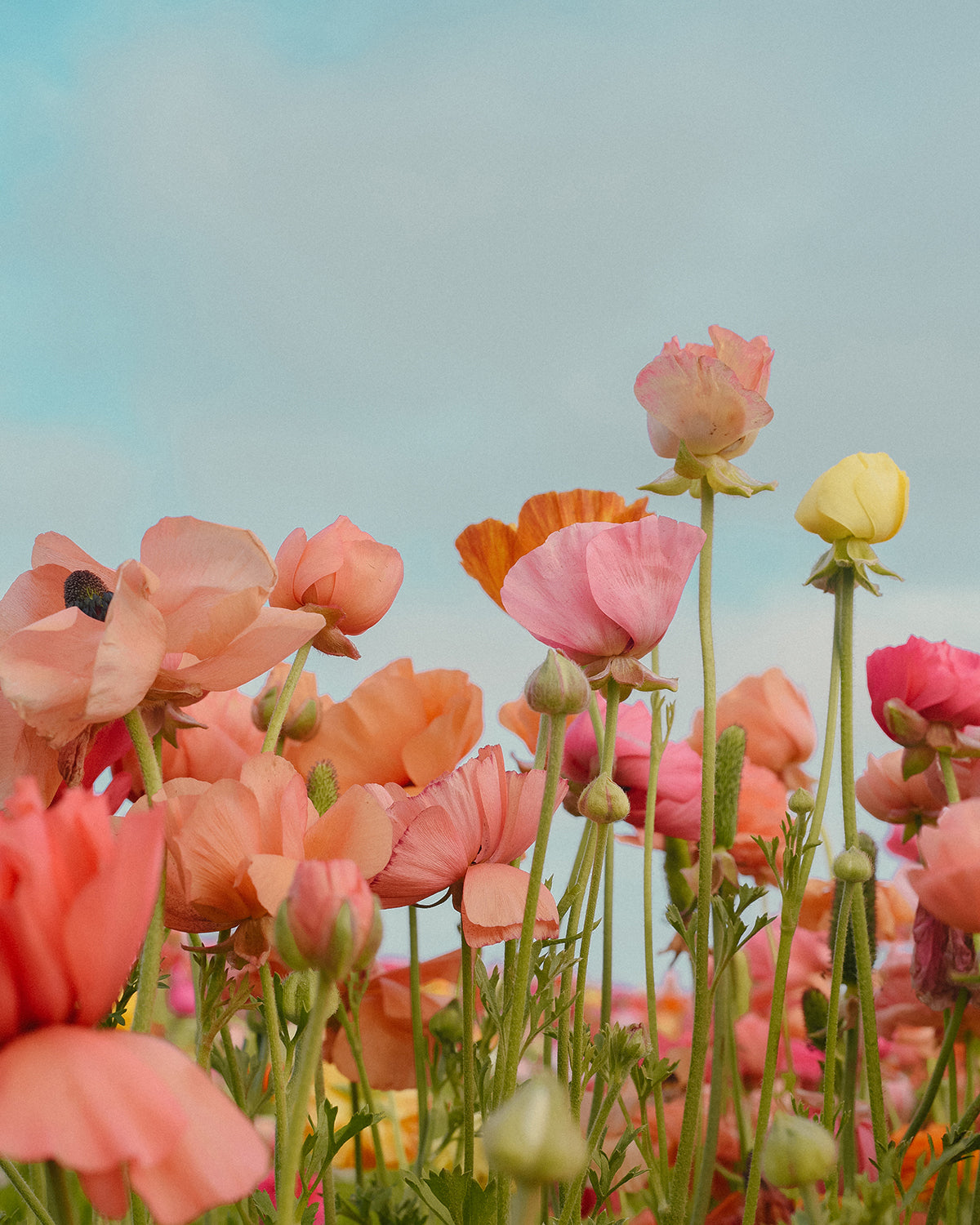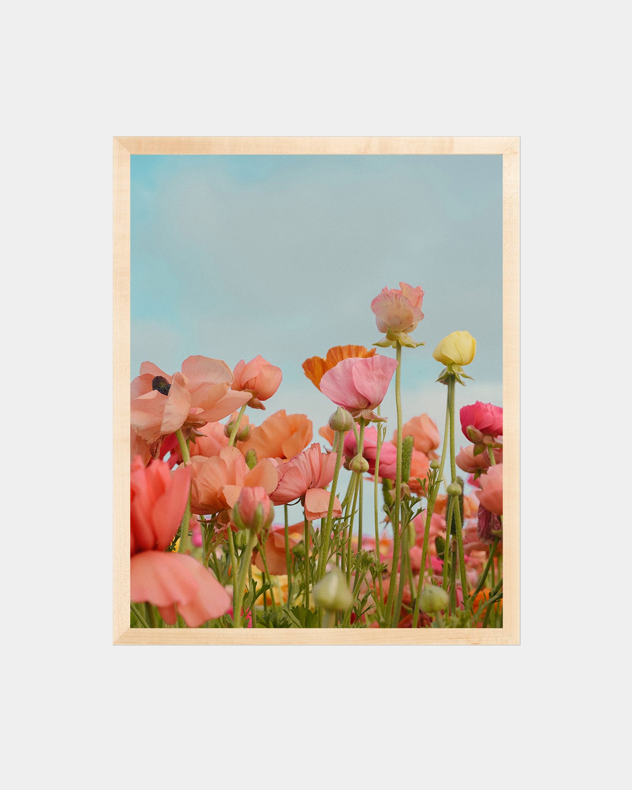 A colorful retro-inspired field of flowers by Erika Carlock. A beautiful, minimal art print to brighten your walls.