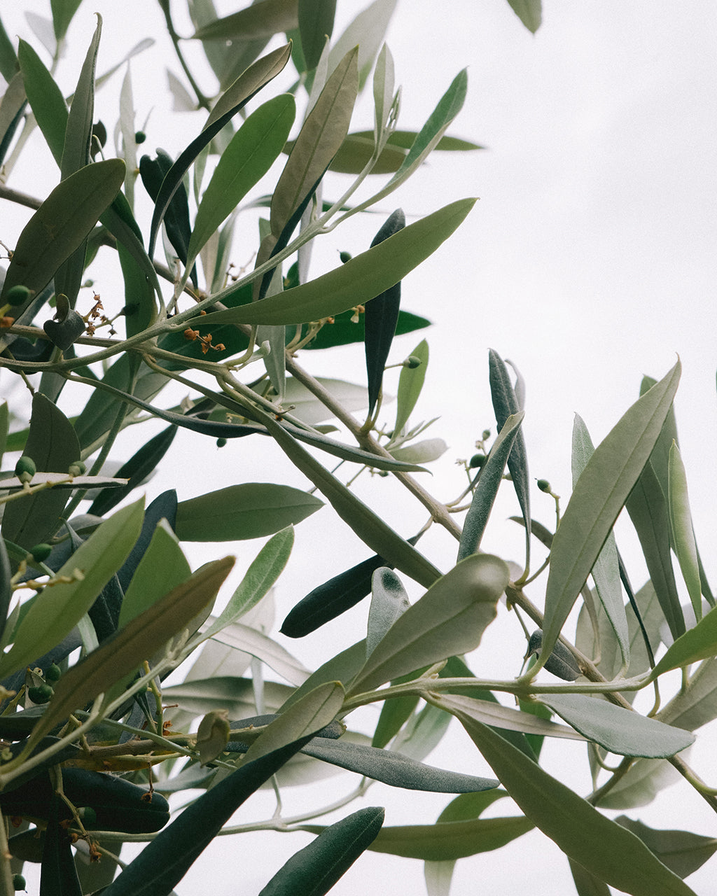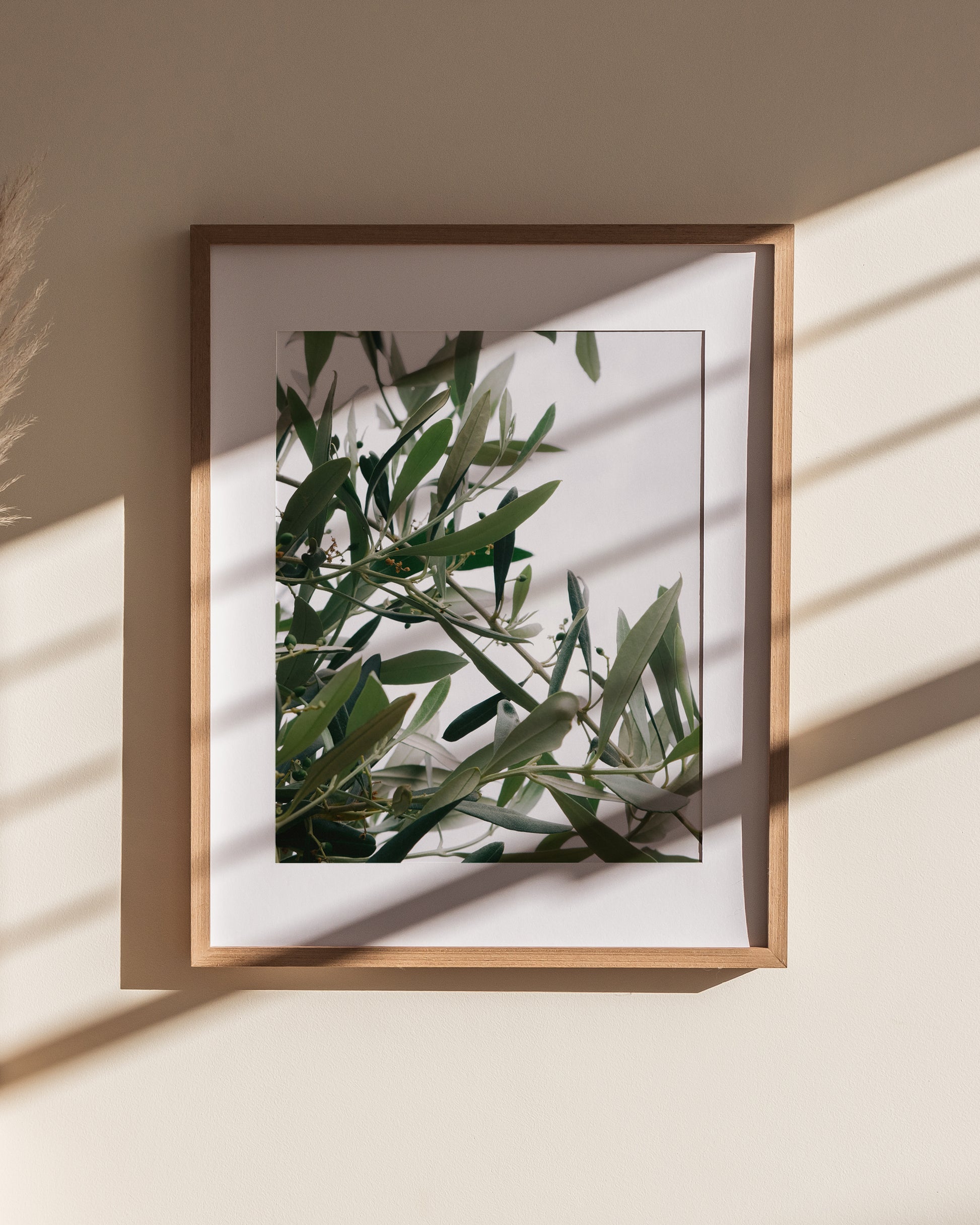 A minimal, olive branch on a 100-year-old olive tree in Puglia, Italy. A beautiful, minimal art print to brighten your walls. Photography by Erika Carlock.