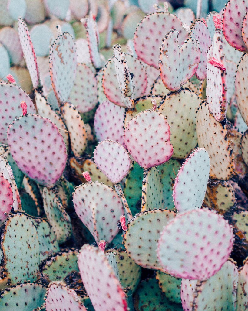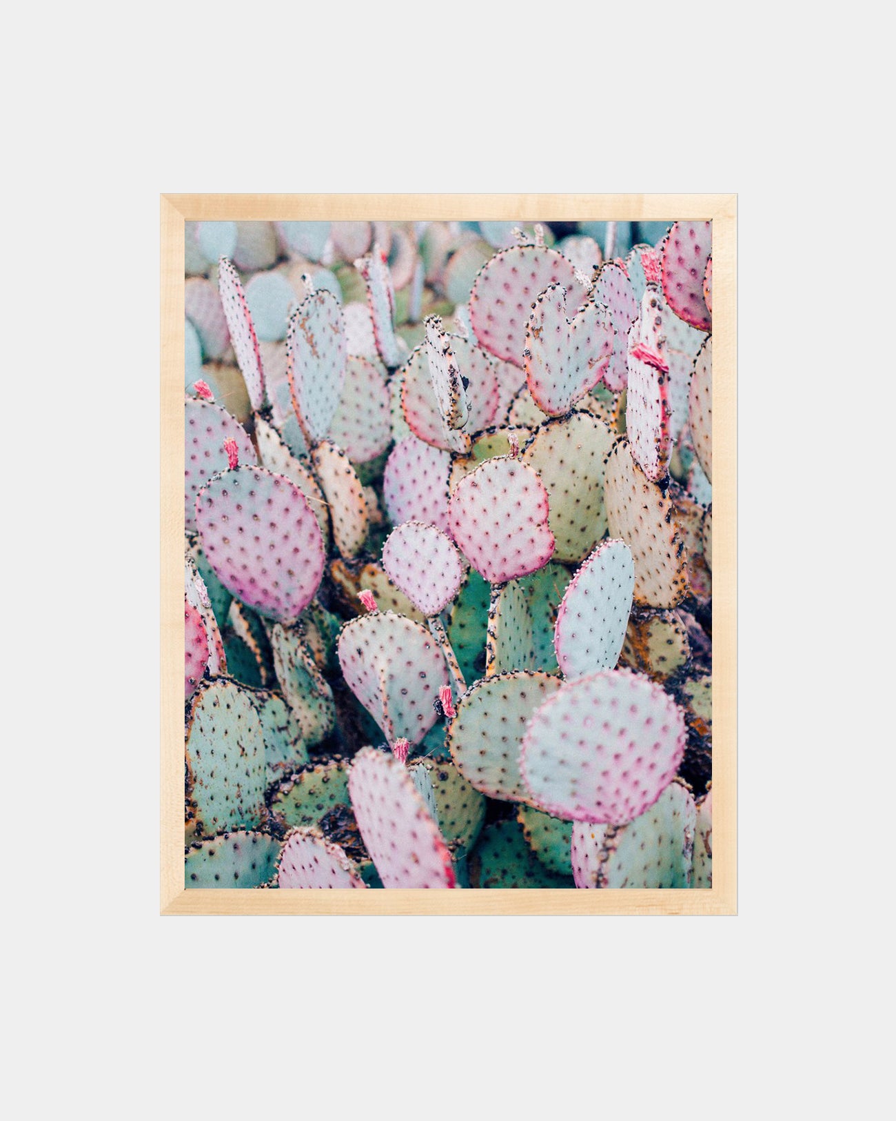A group of pastel cactus in the desert by Erika Carlock. A beautiful, minimal art print to brighten your walls.