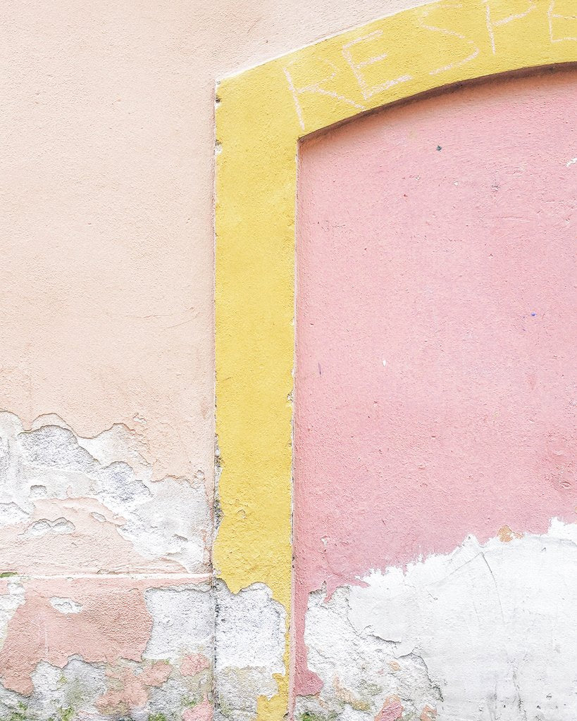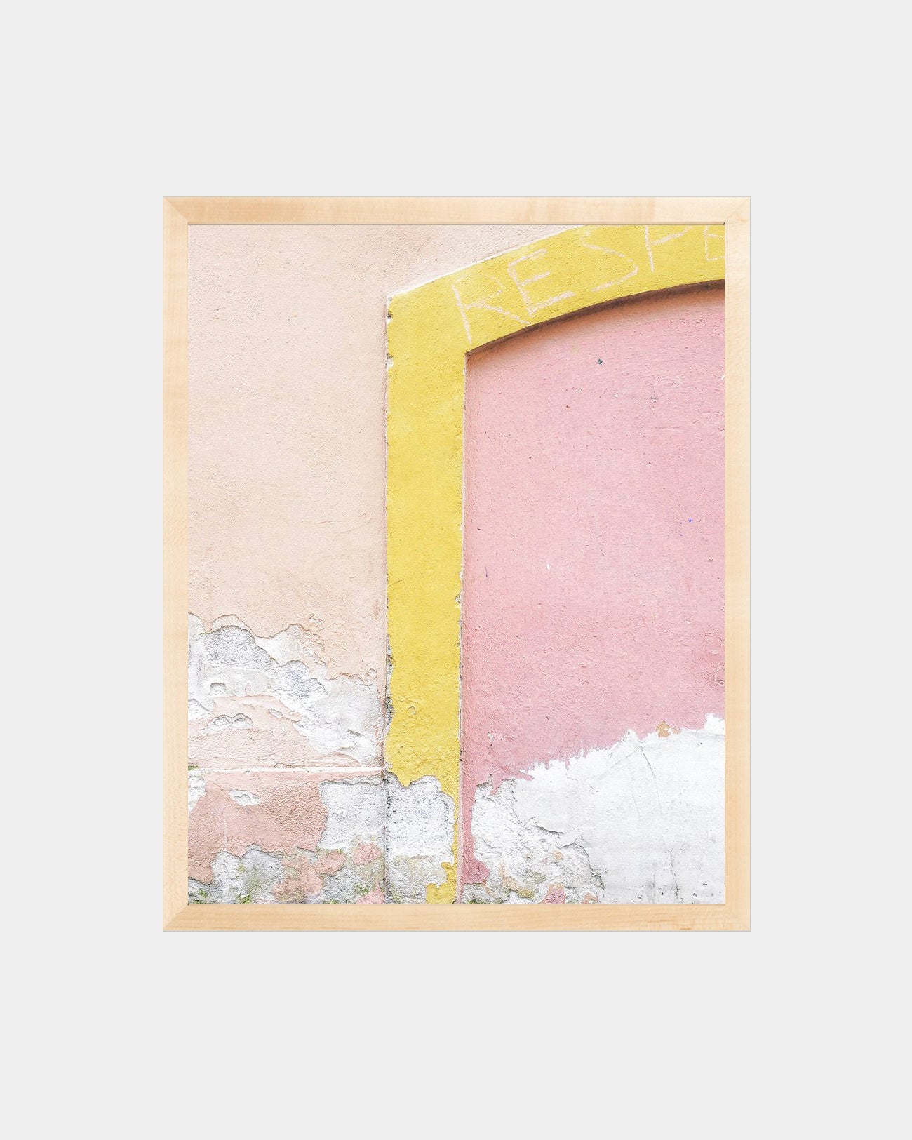 A pastel building on the streets of France by Erika Carlock. A beautiful, minimal art print to brighten your walls.
