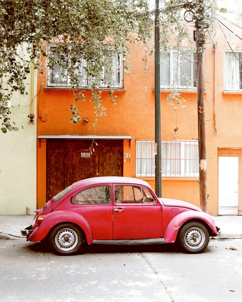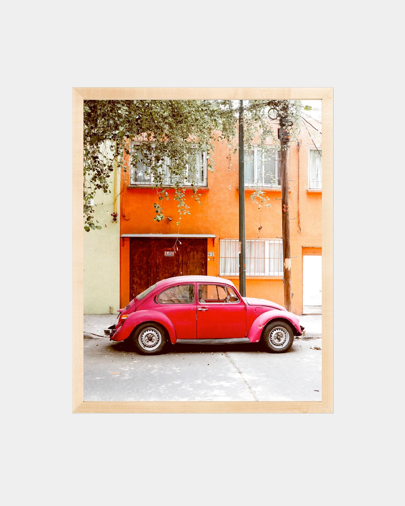 A bright red bug on the streets of Mexico City by Erika Carlock. A beautiful, minimal art print to brighten your walls.