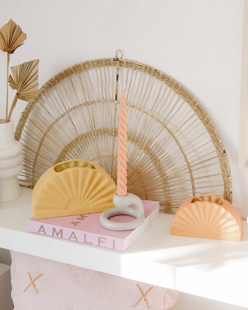 Abstract details. Display your favorite flowers or dried leaves in this sunshine-filled ceramic vase.