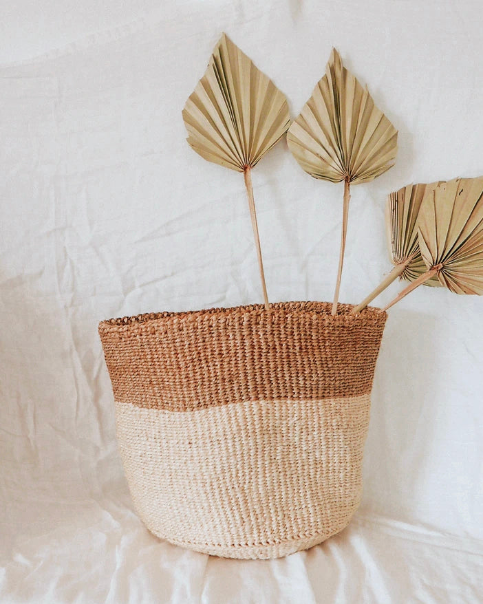 Scandinavian simplicity. Simple and slouchy, our vanilla-dipped baskets are perfect to store your favorite plants, throws, or craft supplies. Each baskets adds natural texture to your space. We love them best with a fiddle leaf fig nestled inside.